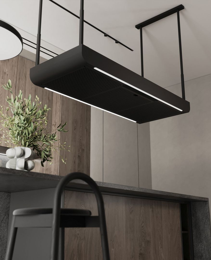 Volumul superb al hotei Arne este completat de funcționalitatea sa excelentă. Inima dispozitivului este o turbină de înaltă performanță, plita este iluminată de un sistem LED eficient energetic, care reproduce culorile în mod natural, iar controlul prin gesturi sporește confortul de utilizare. În plus, există posibilitatea de a personaliza hota. De exemplu: putem ajusta înălțimea aproape la nesfârșit, putem alege varianta (versiunea fără accesorii sau cu o etajeră din lemn sau sticlă), precum și lățimea dispozitivului (130 sau 160 cm). O astfel de customizare a unei hote de bucătărie arhitecturale este greu de egalat.