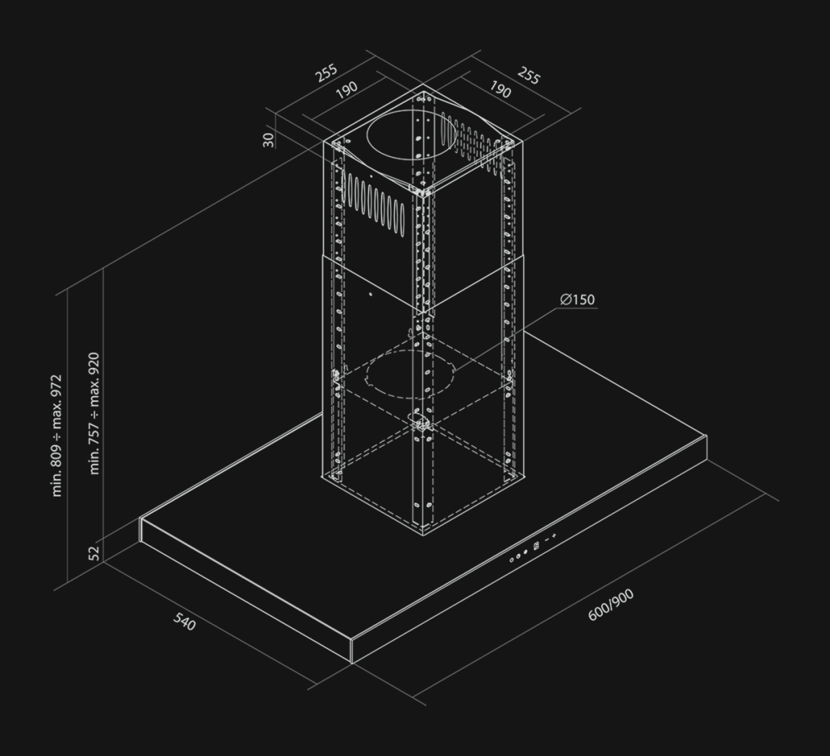 Sento Island Strips Inox-Black, ca o hotă de insulă ce se respectă, oferă reglare a înălțimii, un finisaj din inox împodobit cu un panou de sticlă de culoare neagră. În suprafața de sticlă este ascuns un panou tactil, prin care se controlează atât iluminatul, cât și turbina. Apropo de aceasta, este silențioasă, eficientă și economică, ceea ce se va confirma chiar și în timpul gătitului intensiv. Benzile LED de la partea inferioară reprezintă din nou un gest în direcția economiei de energie, iar datorită temperaturii de culoare de 4000K, emit o culoare de lumină apropiată de cea naturală (a zilei). Adăugați la aceasta filtrele anti-grăsime multistrat și obțineți un produs complet.