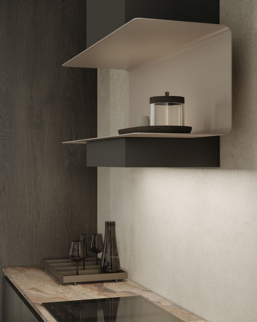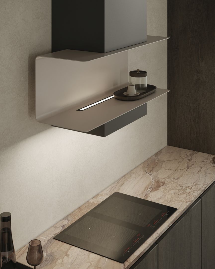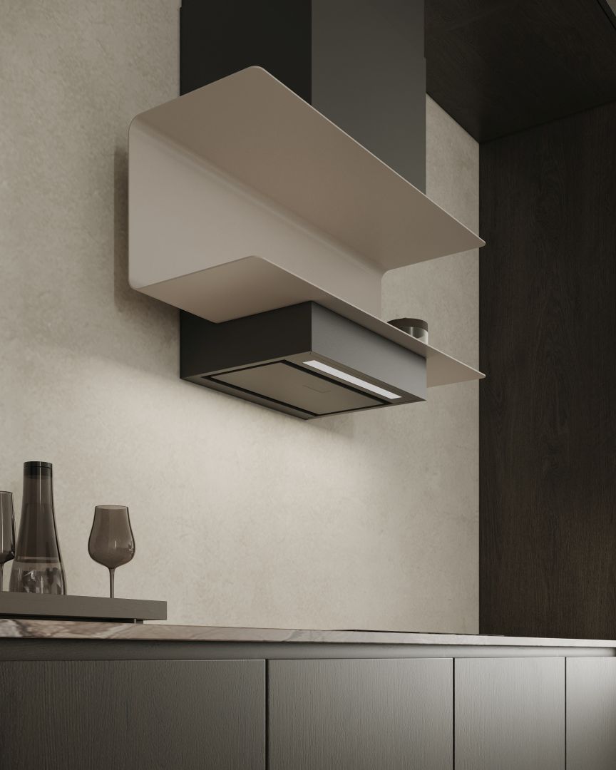 Hota de perete C-Shelf este o alegere excelentă pentru bucătăriile moderne inspirate de minimalism, stilul industrial și scandinav. Finisajul mat și etajera elegantă se armonizează cu betonul arhitectural, lemnul natural sau marmura. Se potrivește perfect în spațiile deschise, unde bucătăria devine centrul casei. Este modelul ideal pentru designerii de interior care doresc să sublinieze lejeritatea, armonia și caracterul modern al bucătăriei. C-Shelf nu este doar o hotă – este o operă de artă utilitară de design.