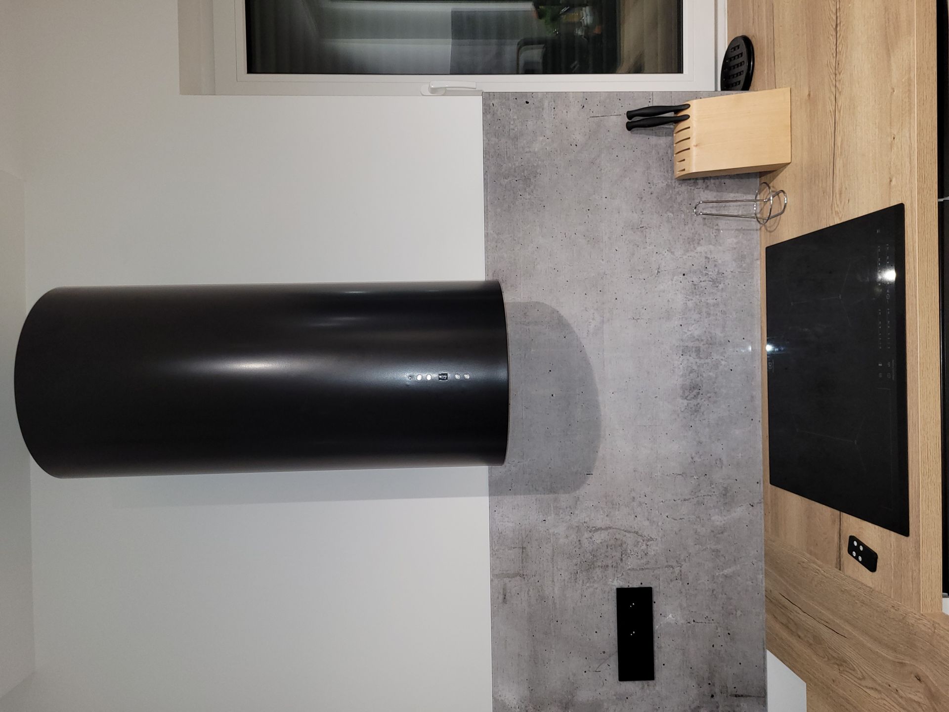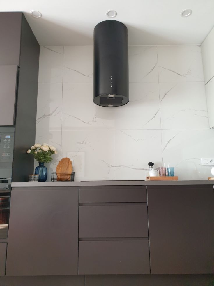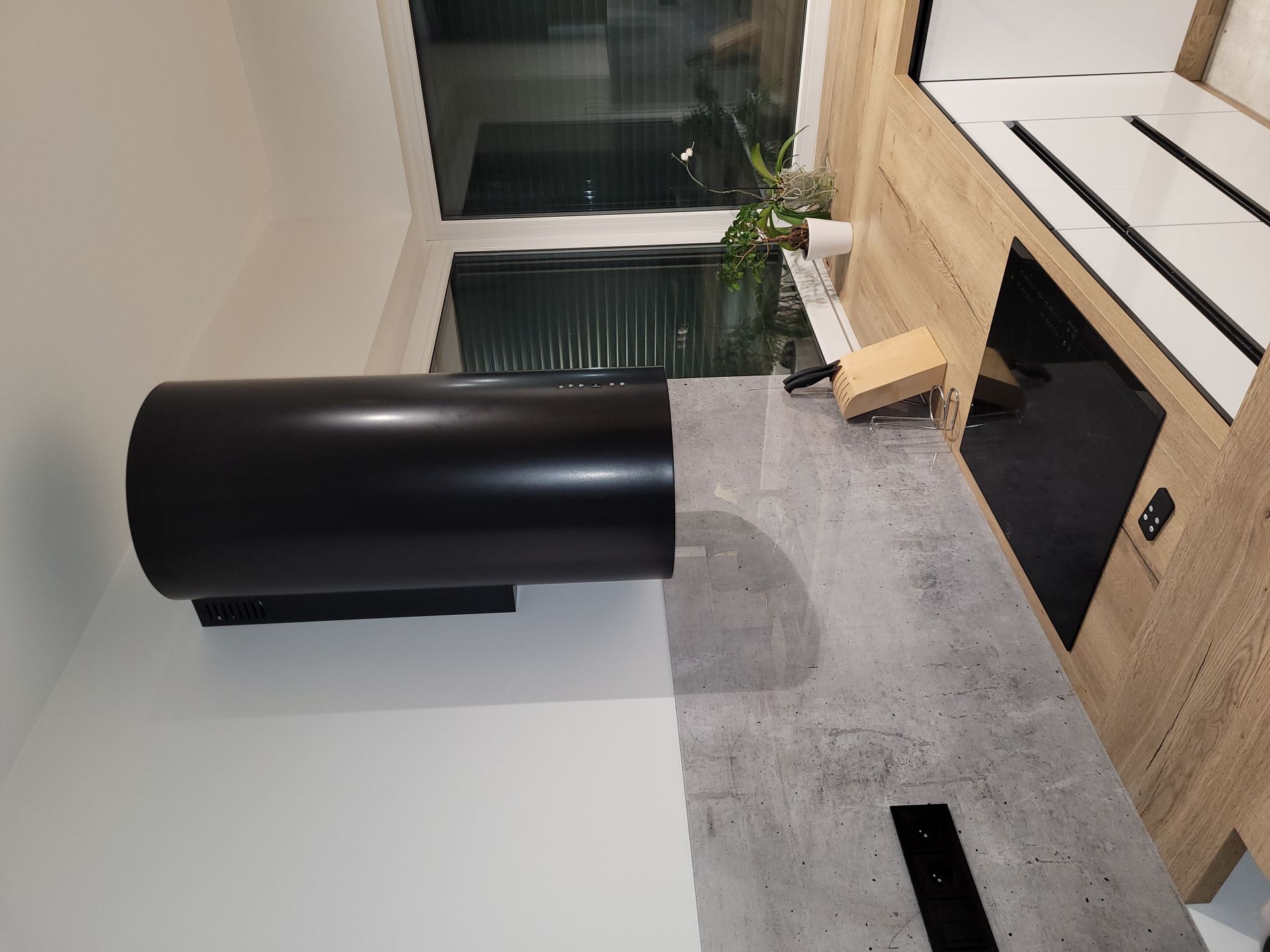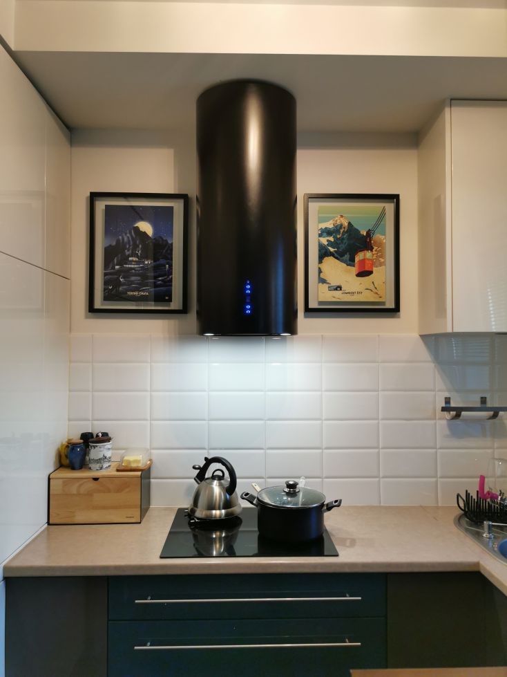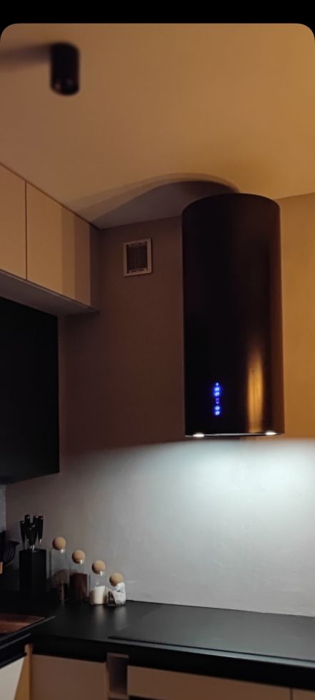 Această hotă de perete modernă se potrivește perfect în bucătăriile contemporane. Aspectul său unic și finisajul negru lucios se îmbină armonios cu alte electrocasnice, motiv pentru care modelul Cylindro OR Black Matt a cucerit un număr mare de clienți.