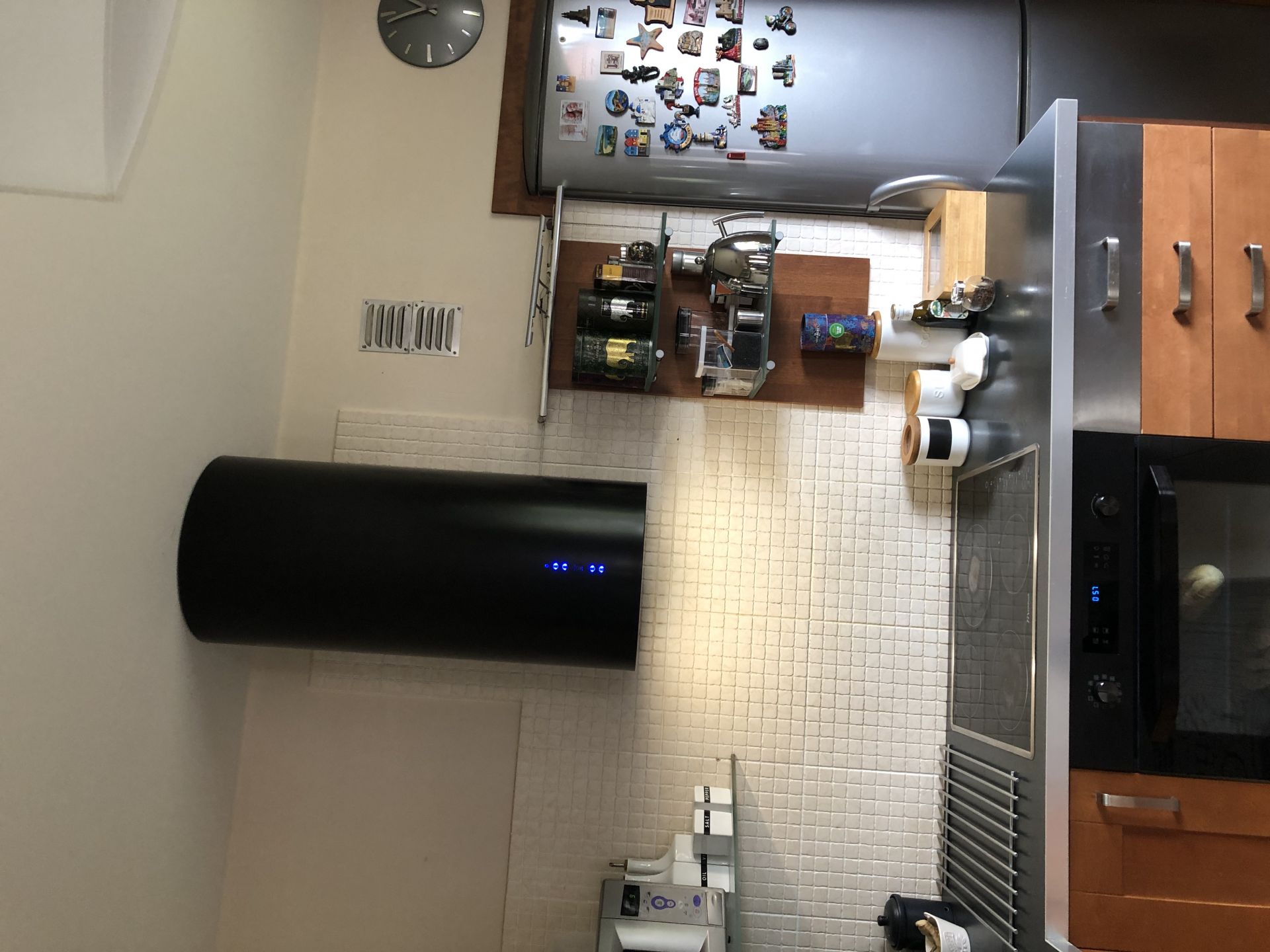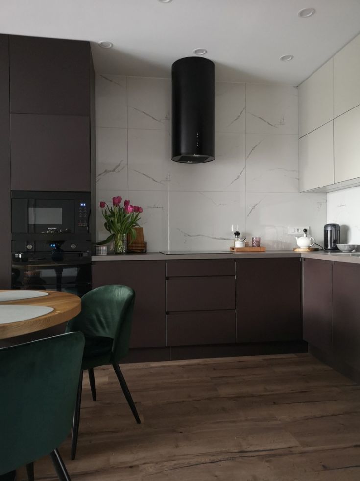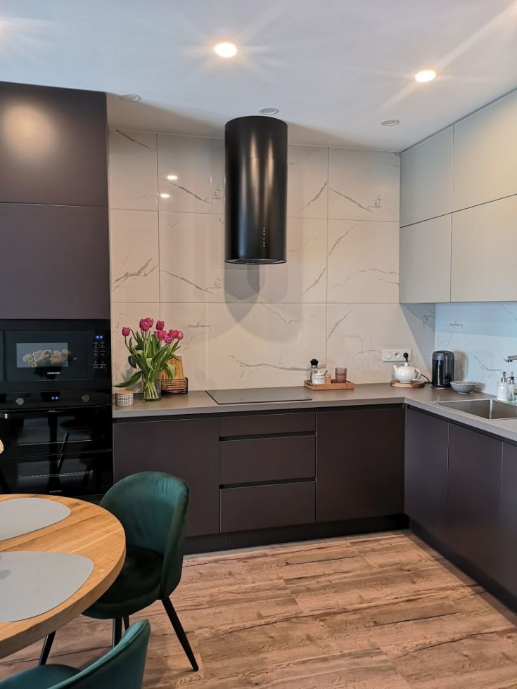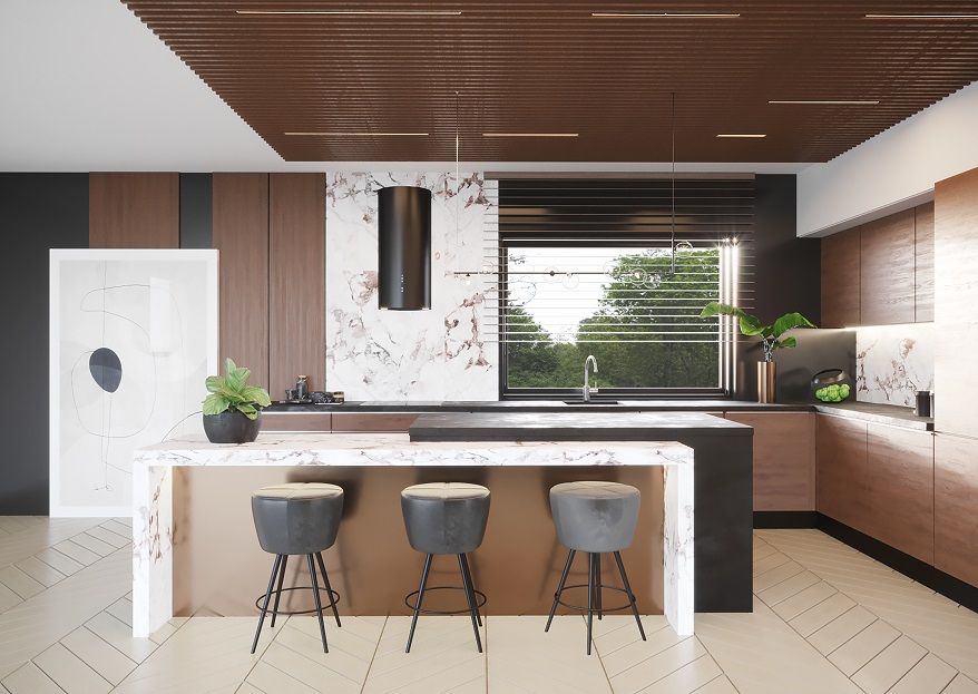 Această hotă de perete modernă se potrivește perfect în bucătăriile contemporane. Aspectul său unic și finisajul negru lucios se îmbină armonios cu alte electrocasnice, motiv pentru care modelul Cylindro OR Black Matt a cucerit un număr mare de clienți.