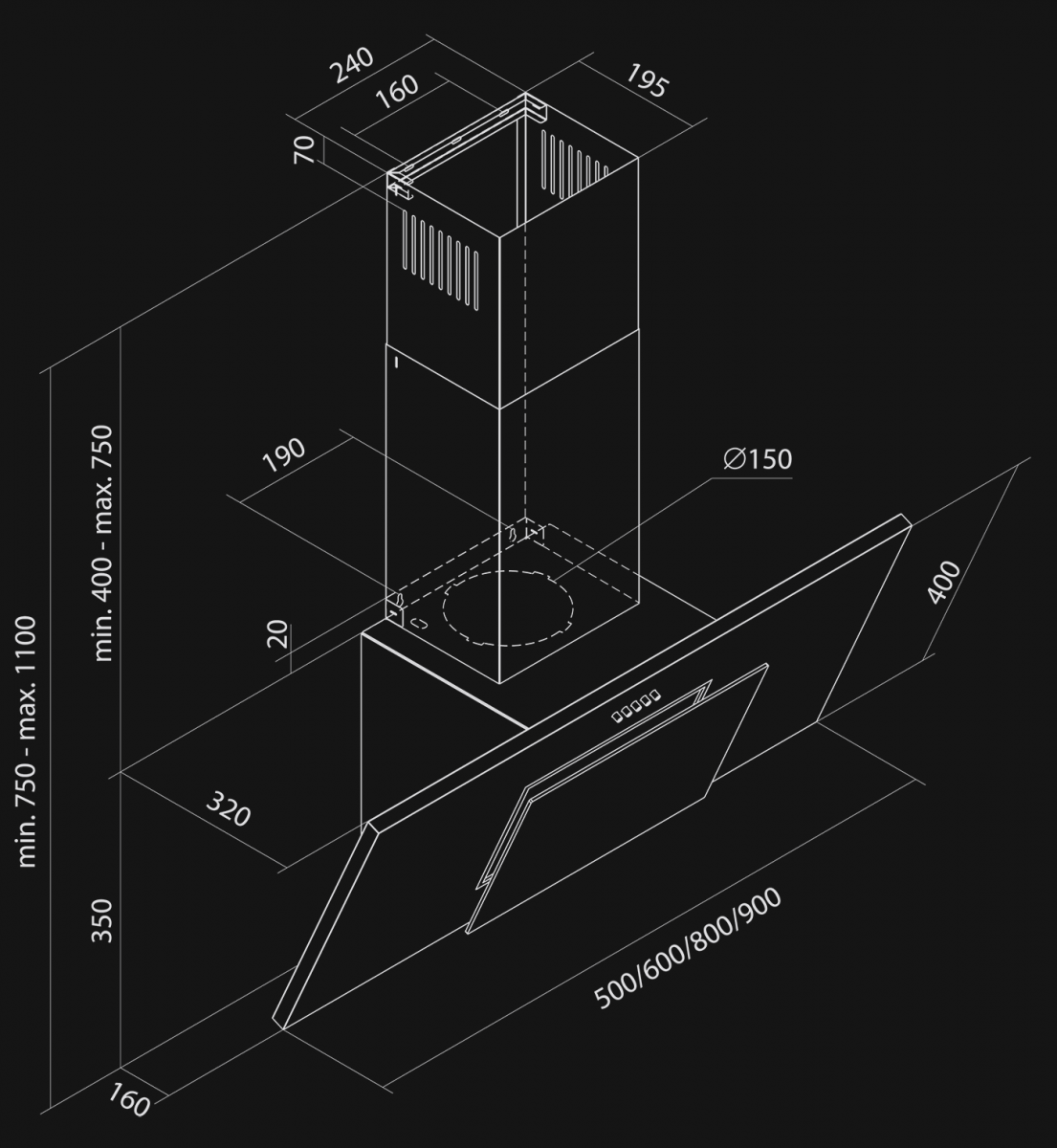 | Înălțime hotă: | min 77,00 - max 112,00 cm |