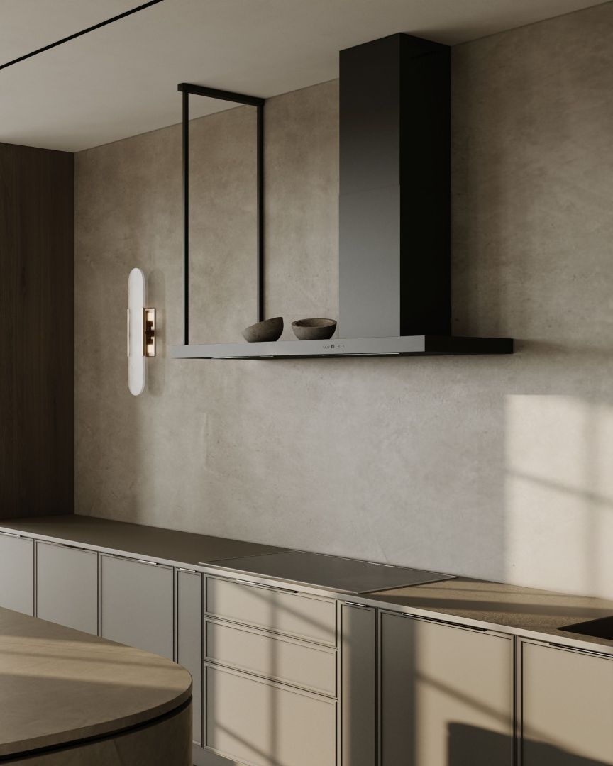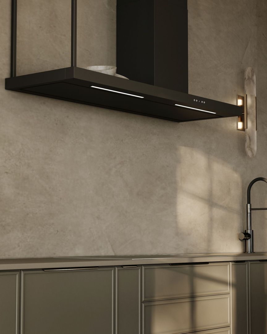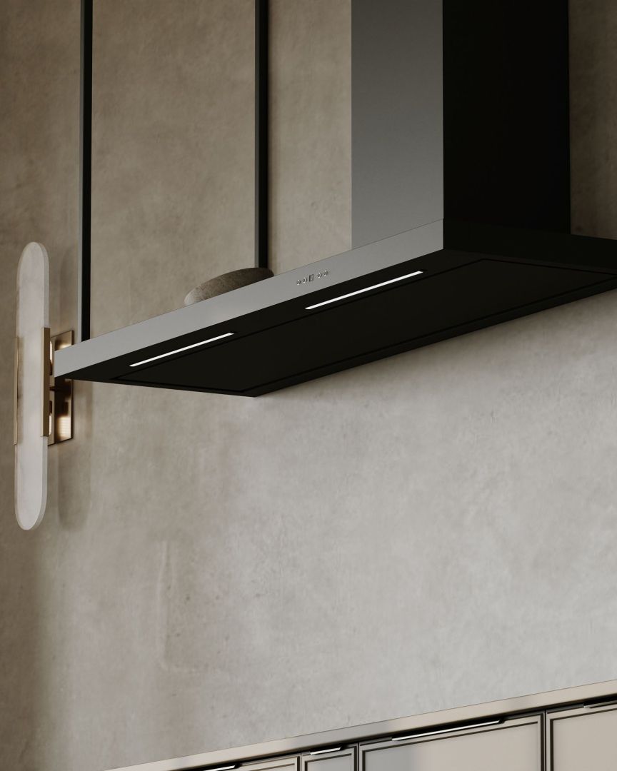 Hota se va potrivi perfect ca punct focal principal al amenajării peretelui din bucătărie, iar suprafața sa superioară, plană, poate servi ca un raft practic pentru condimente, ierburi aromatice sau accesorii de bucătărie. Această combinație de funcționalitate și decor se aliniază nevoilor moderne ale utilizatorilor.
