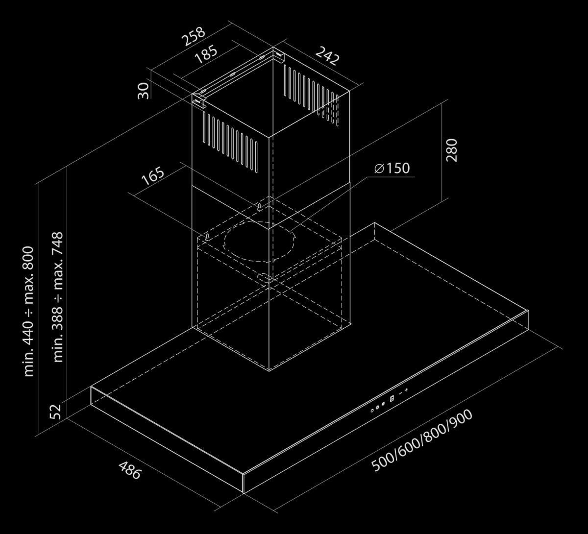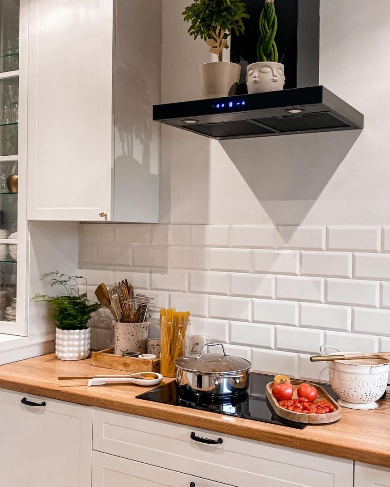 Noua variantă a hotei de perete Sento OR este realizată cu atenție la cele mai mici detalii, vopsită integral într-o culoare neagră la modă, adaptându-se astfel la cele mai recente tendințe în bucătărie. O atenție deosebită merită partea frontală, care este acoperită cu sticlă securizată neagră, unde, în centru, se află panoul de control tactil cu afișaj. Pe partea inferioară sunt două benzi LED care vor ilumina perfect suprafața blatului. Hota este disponibilă în trei dimensiuni: 60 cm, 80 cm și 90 cm.