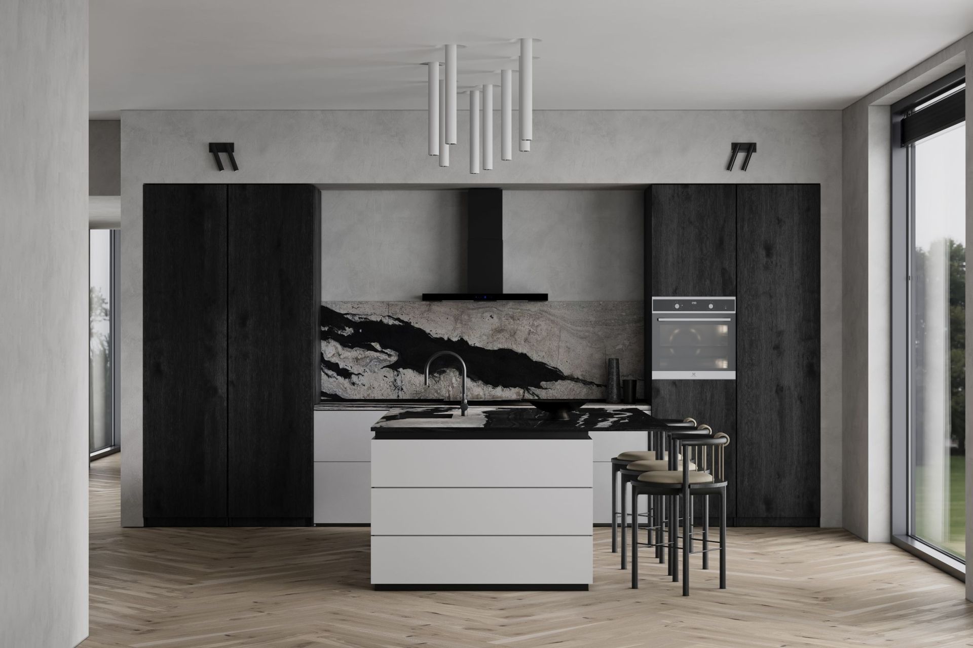 Hotă de perete Sento OR Strips Black Matt – setul include: