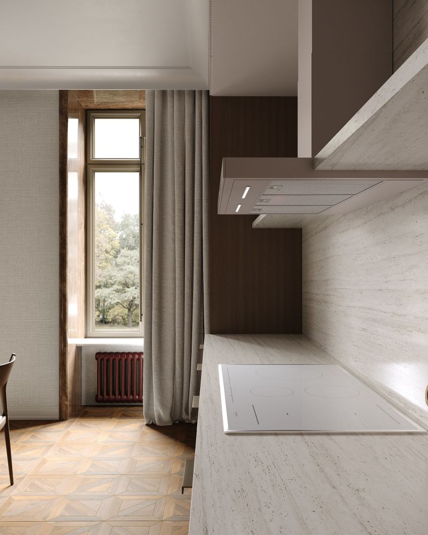Nortberg Bucătărie Liniștită (locația în interiorul clădirii) – sistem de extracție cu turbina poziționată în afara bucătăriei (în interiorul casei, la o distanță de până la 4 m de aparat, de exemplu în pod, garaj, cameră tehnică, cămară, balcon sau alte spații auxiliare).