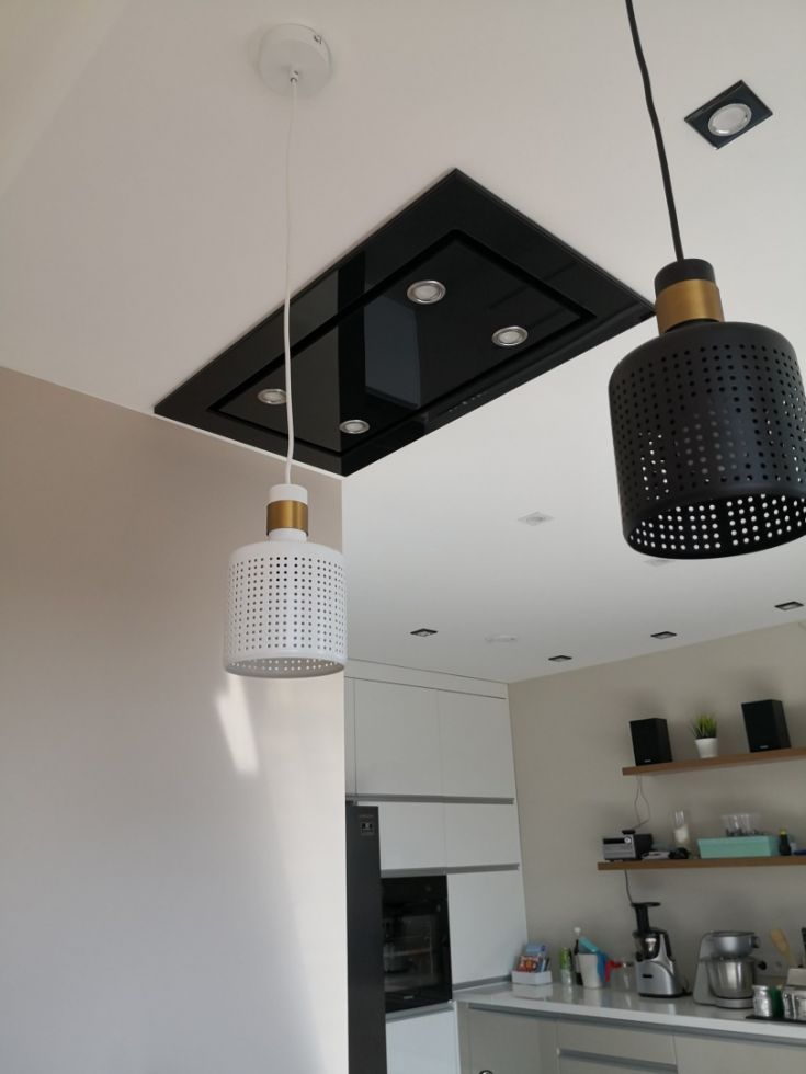 Hotă de tavan acoperită în întregime cu sticlă securizată albă sau neagră. Datorită suprafeței mari de absorbție și celor patru puncte de iluminare LED, este capabilă să asigure o eficiență maximă în eliminarea mirosurilor din bucătărie și o vizibilitate excelentă. Hota este echipată cu o turbină eficientă de clasă energetică A, cu posibilitatea de a fi detașată și montată în alt loc, la o distanță de maximum 4 metri.