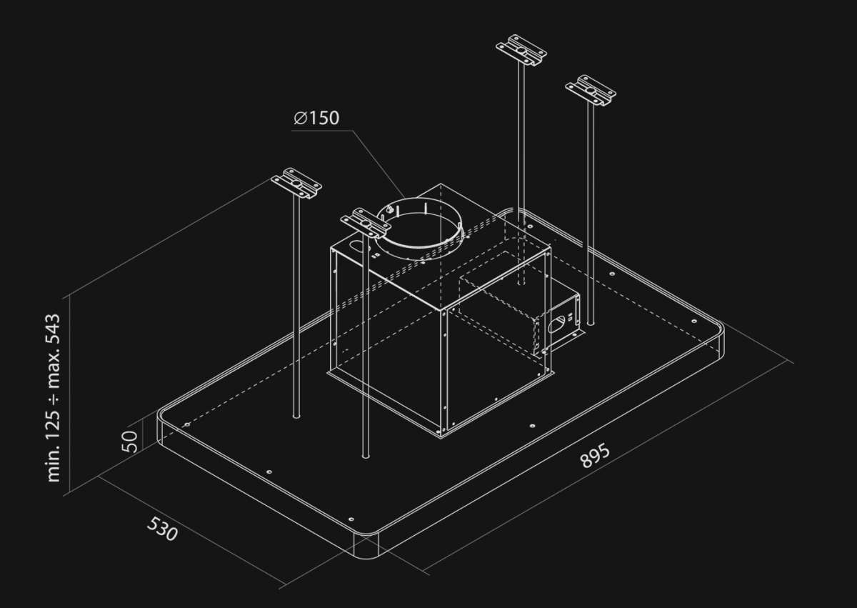 | Distanța min - max față de plita cu inducție: | 150 cm - 180 cm |