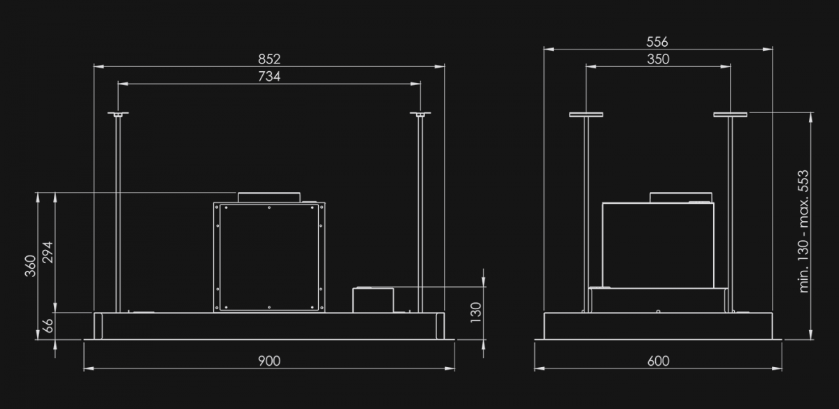 | Distanța Min - Max față de plita cu inducție: | 150 cm - 180 cm |