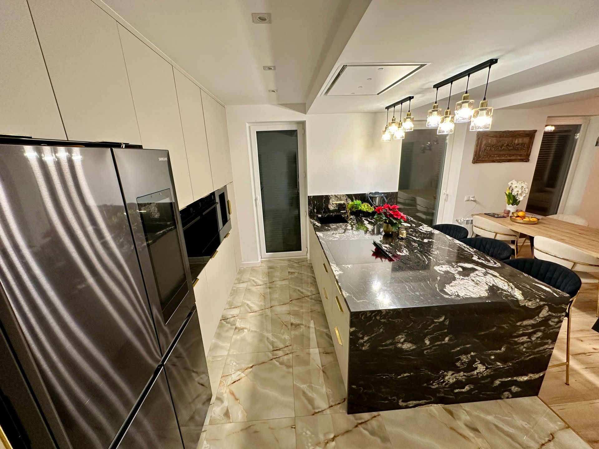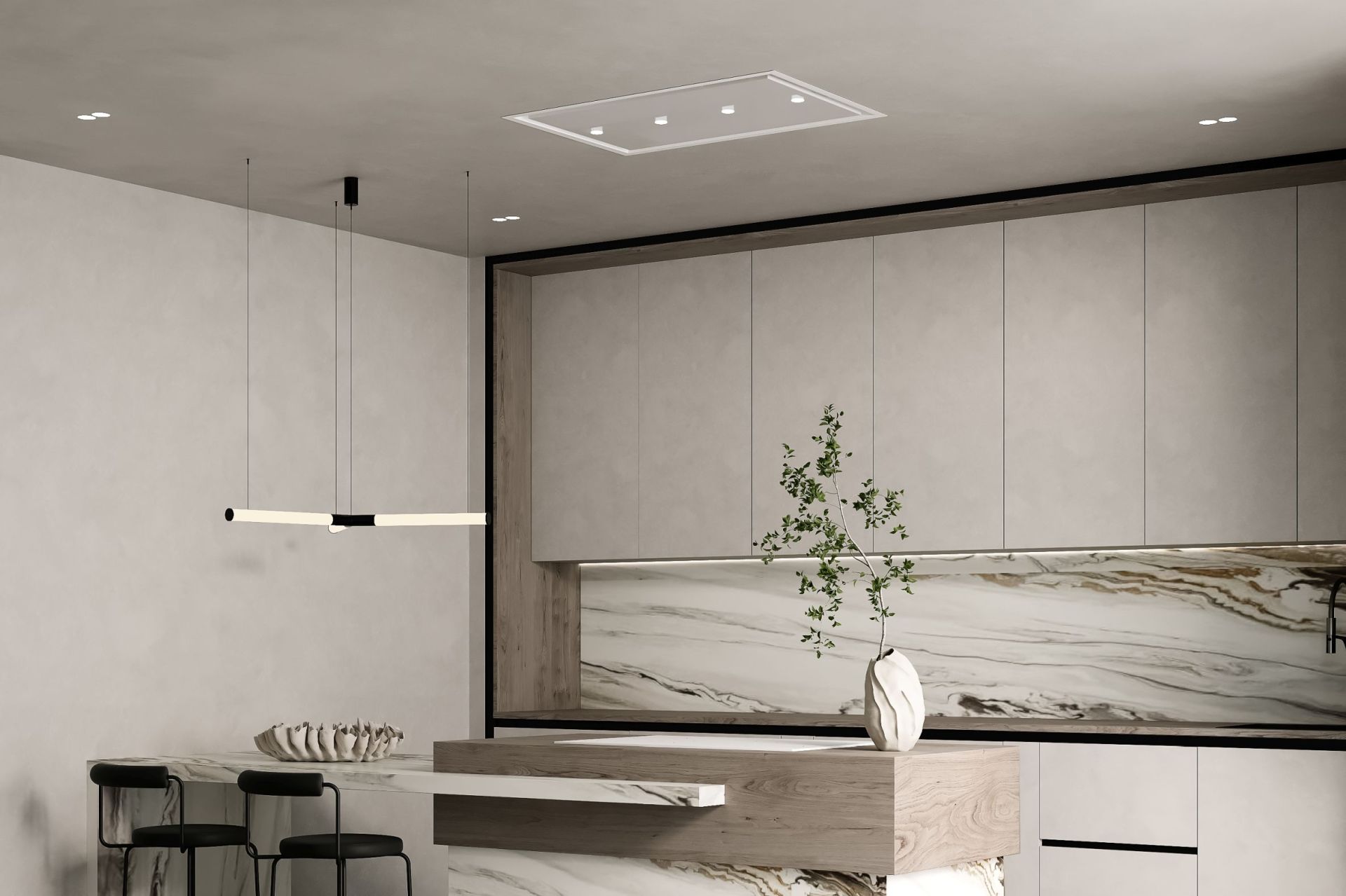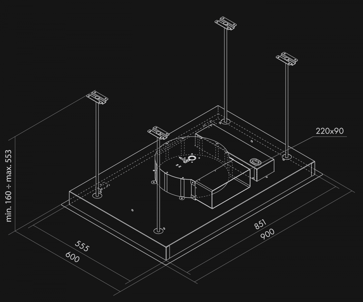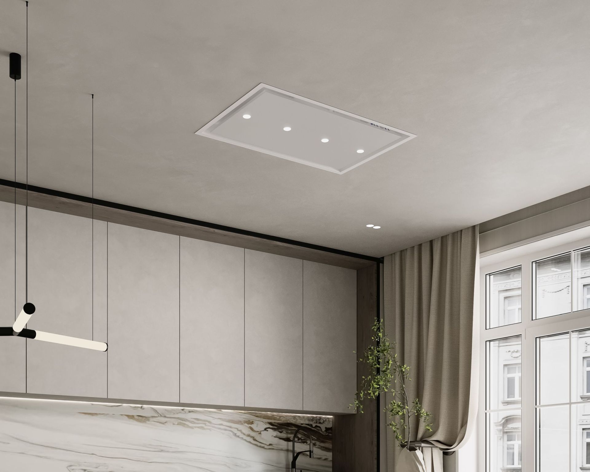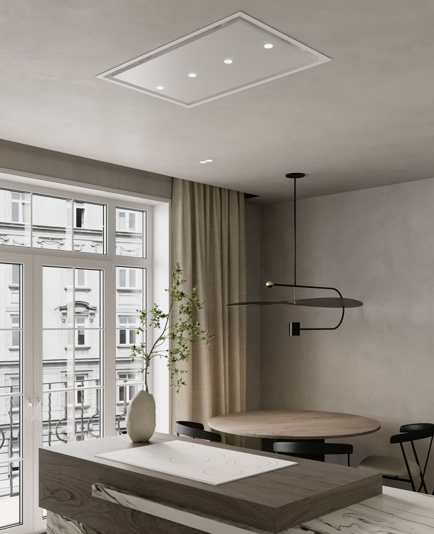 CEA MAI SUBȚIRE HOTĂ DE TAVAN DISPONIBILĂ PE PIAȚĂ! O hotă perfect încastrată în suprafața tavanului, cu parametri tehnici excelenți. Un design complet modern, decorativ prin minimalismul său. Fabricată din componente europene de cea mai înaltă calitate, în culorile negru sau alb. Tehnologia de absorbție perimetrală asigură eficiență maximă și, în același timp, o funcționare discretă a dispozitivului. Hota este echipată cu iluminare cu economie de energie, distribuită simetric pe clapa centrală sub forma a 4 spoturi LED eficiente. Datorită dimensiunilor sale, poate fi instalată cu ușurință la o distanță mare de plita de gătit, asigurând în continuare o ventilație fantastică. Un avantaj suplimentar al hotei este controlul prin telecomandă radio, care permite operarea dispozitivului din orice loc al încăperii.