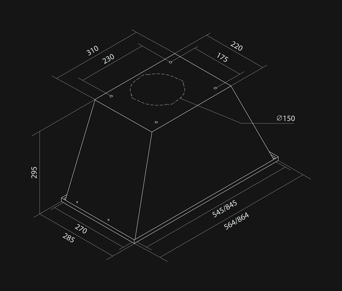 Achiziționând hota incorporabilă sub dulap Lando Glass 2STRIPS Black, veți găsi în set următoarele elemente: