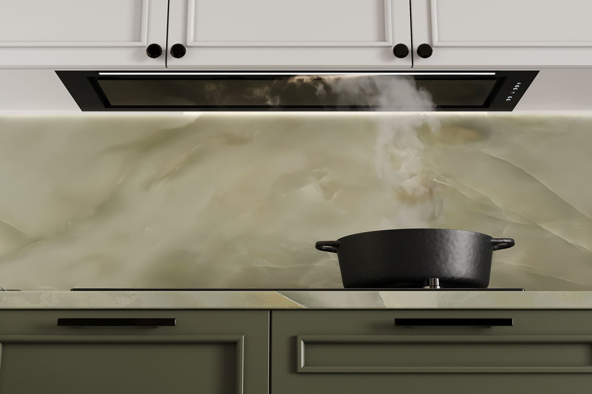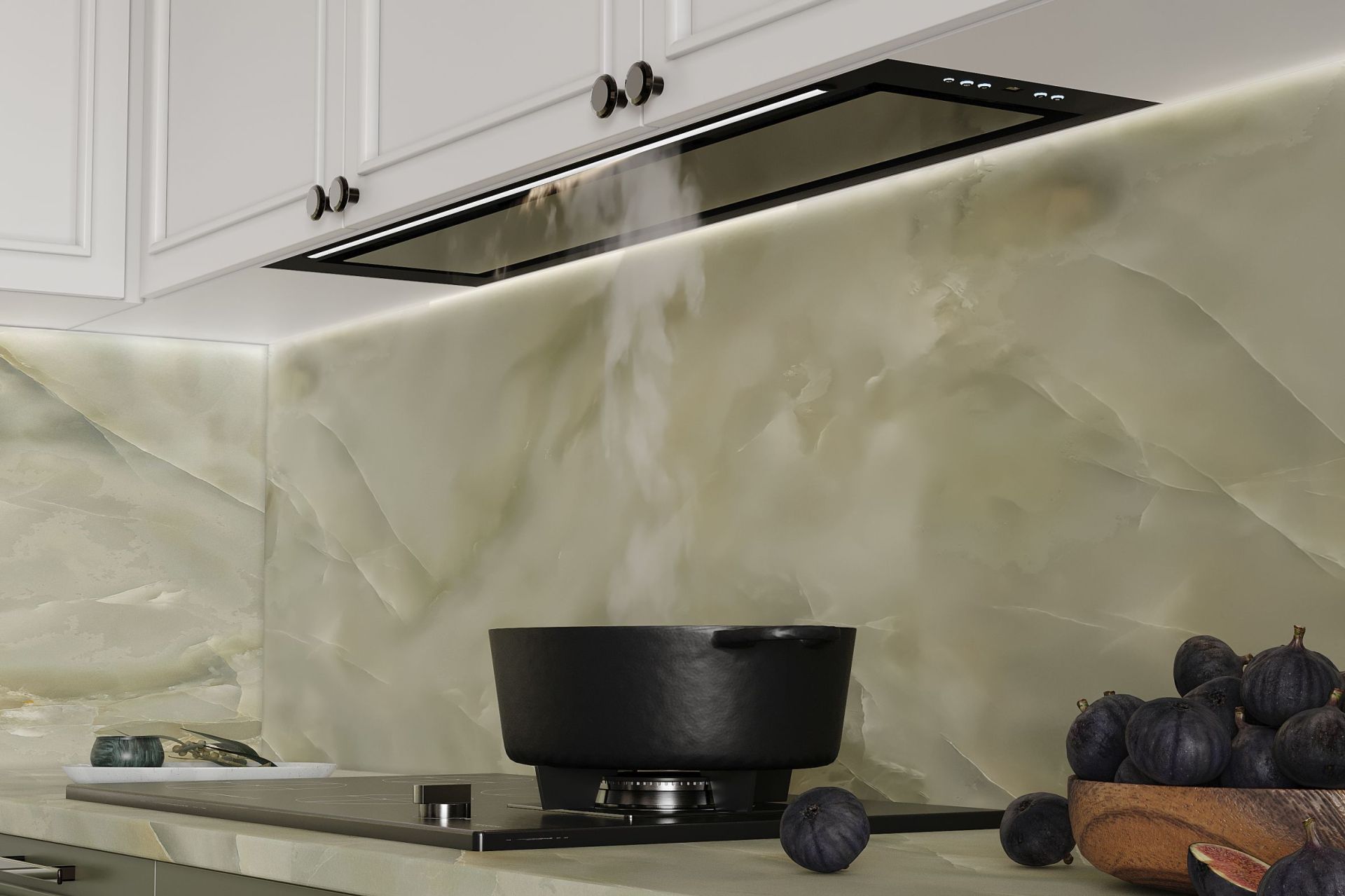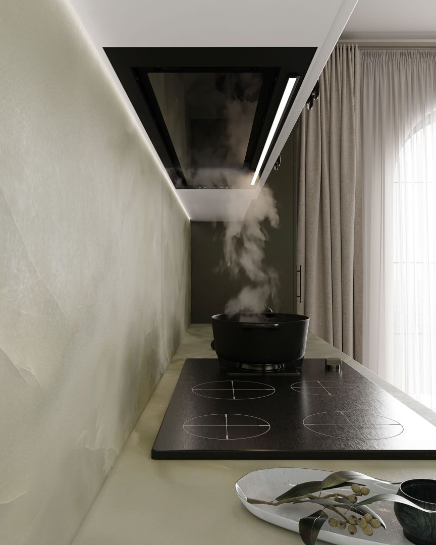 Hota modernă încorporabilă va arăta fantastic în orice amenajare de bucătărie. Corpul minimalist, economisitor de spațiu, se va încadra perfect în spațiile glamour, barn house, precum și în lofturi și soft lofturi. Va arăta impecabil într-o bucătărie în stil provensal, boho, vintage sau scandic.