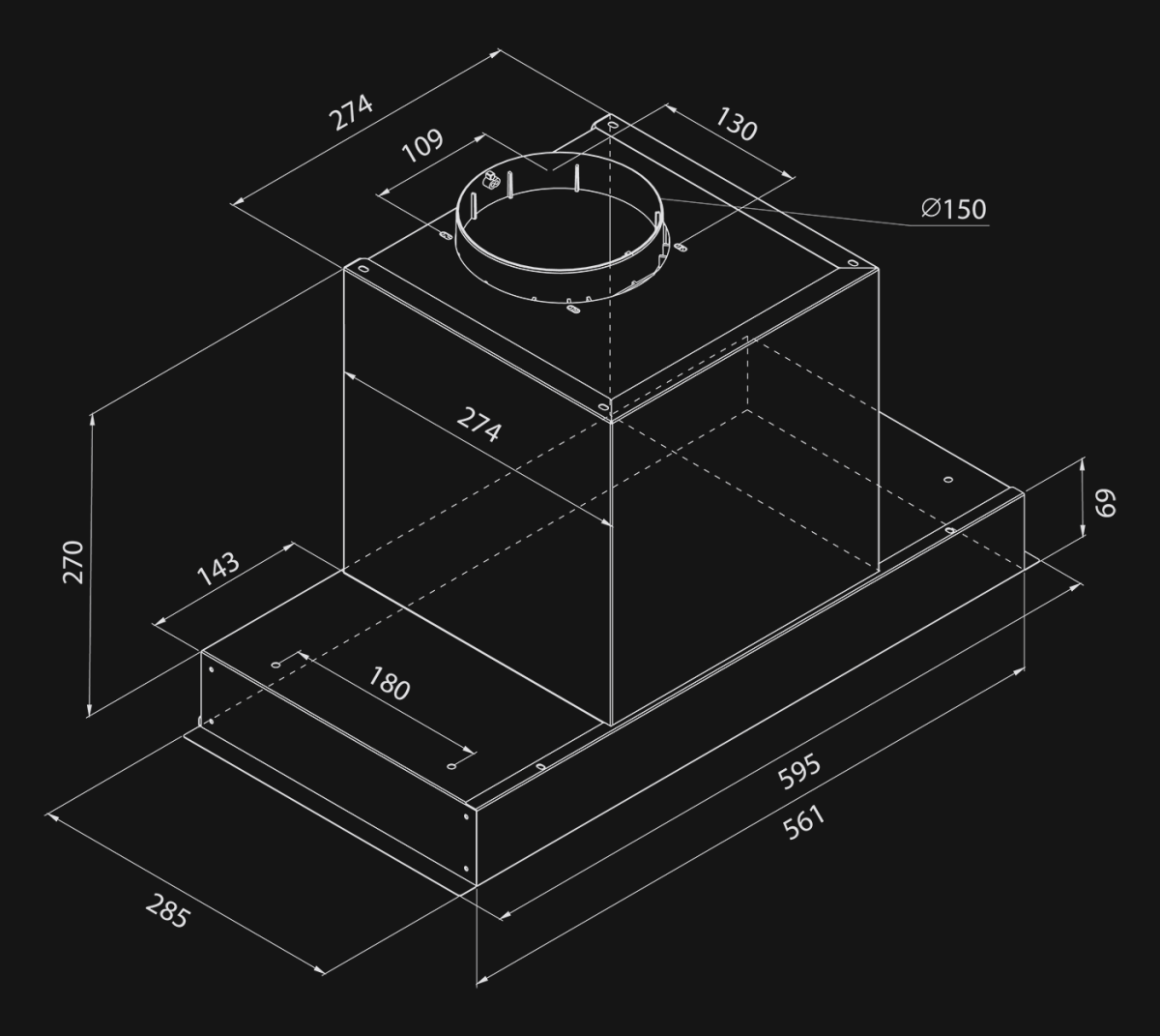 | Greutate (59,5 cm): | hotă 9,55 kg | hotă cu ambalaj 13,15 kg |