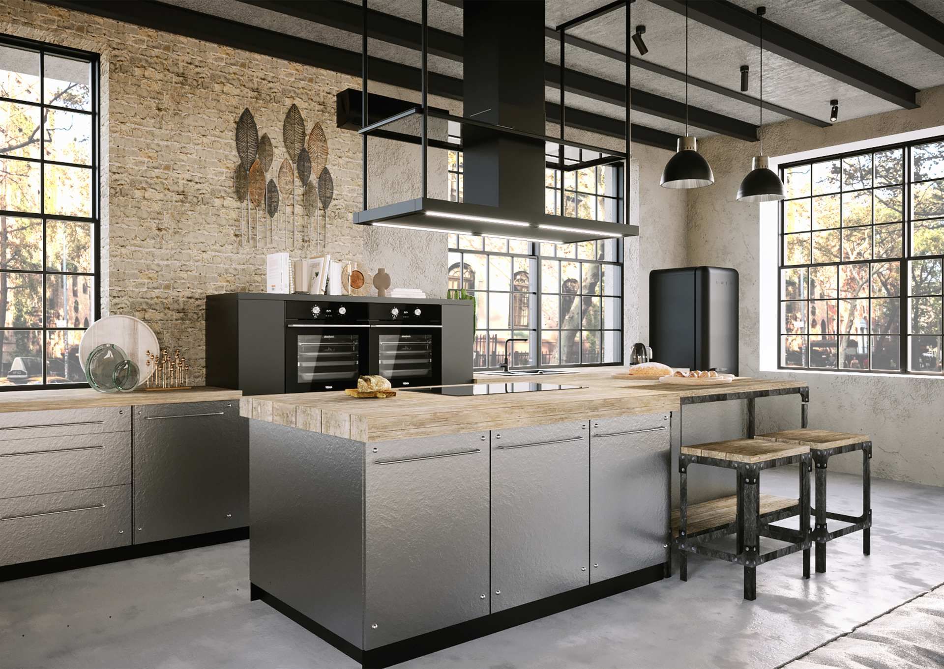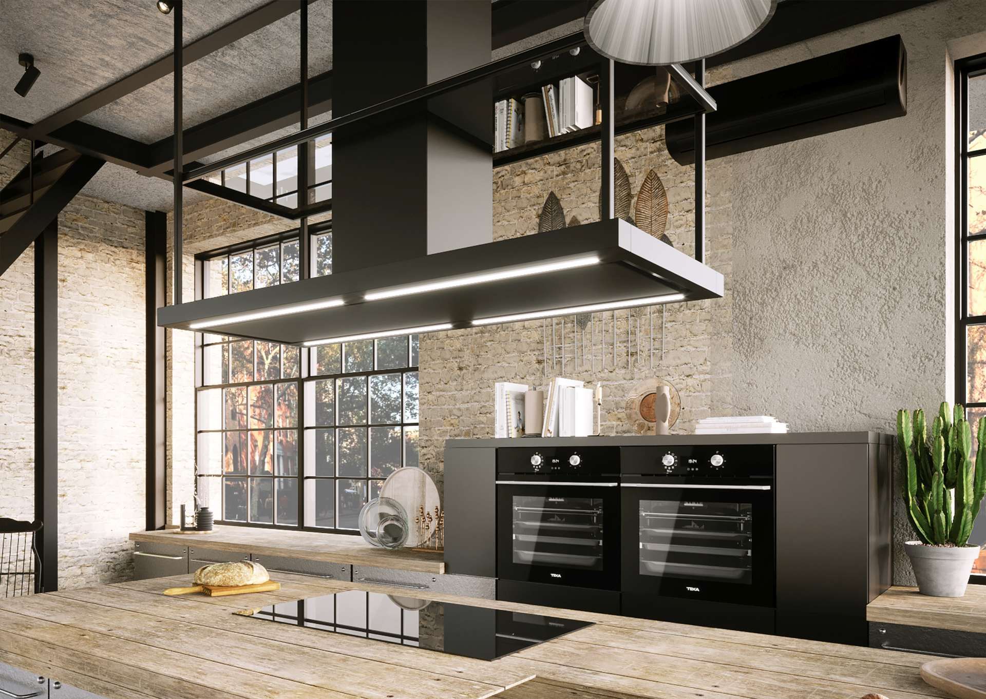 Și astfel, această hotă maiestuoasă atrage atenția printr-o formă simplă, cu un coș central și două perechi de suporturi metalice care se extind până la tavan. Designul perfect al dispozitivului face ca hota să surprindă, pe de o parte, prin lejeritate – o realizare extraordinară având în vedere dimensiunile – și, pe de altă parte, prin stabilitate. Designul futurist al hotei se integrează perfect în încăperi înalte, spații industriale, mansarde decadente, dar și în bucătării scandinave ultra-moderne, unde minimalismul și formele simple joacă un rol central.