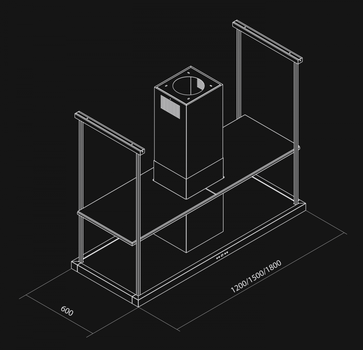 - Potrivire excelentă cu suprafața insulei de bucătărie – hotă disponibilă în dimensiuni: 120 cm, 150 cm, 180 cm
