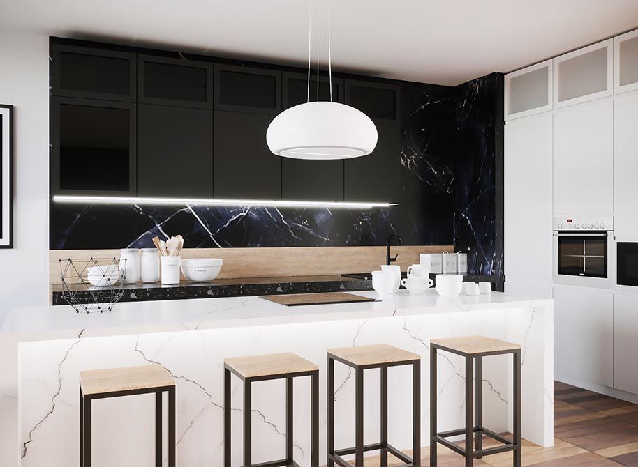 Utilizarea celei mai noi generații de iluminare LED SMD, datorită căreia consumul de energie este simbolic, iar bucătăria este perfect iluminată.