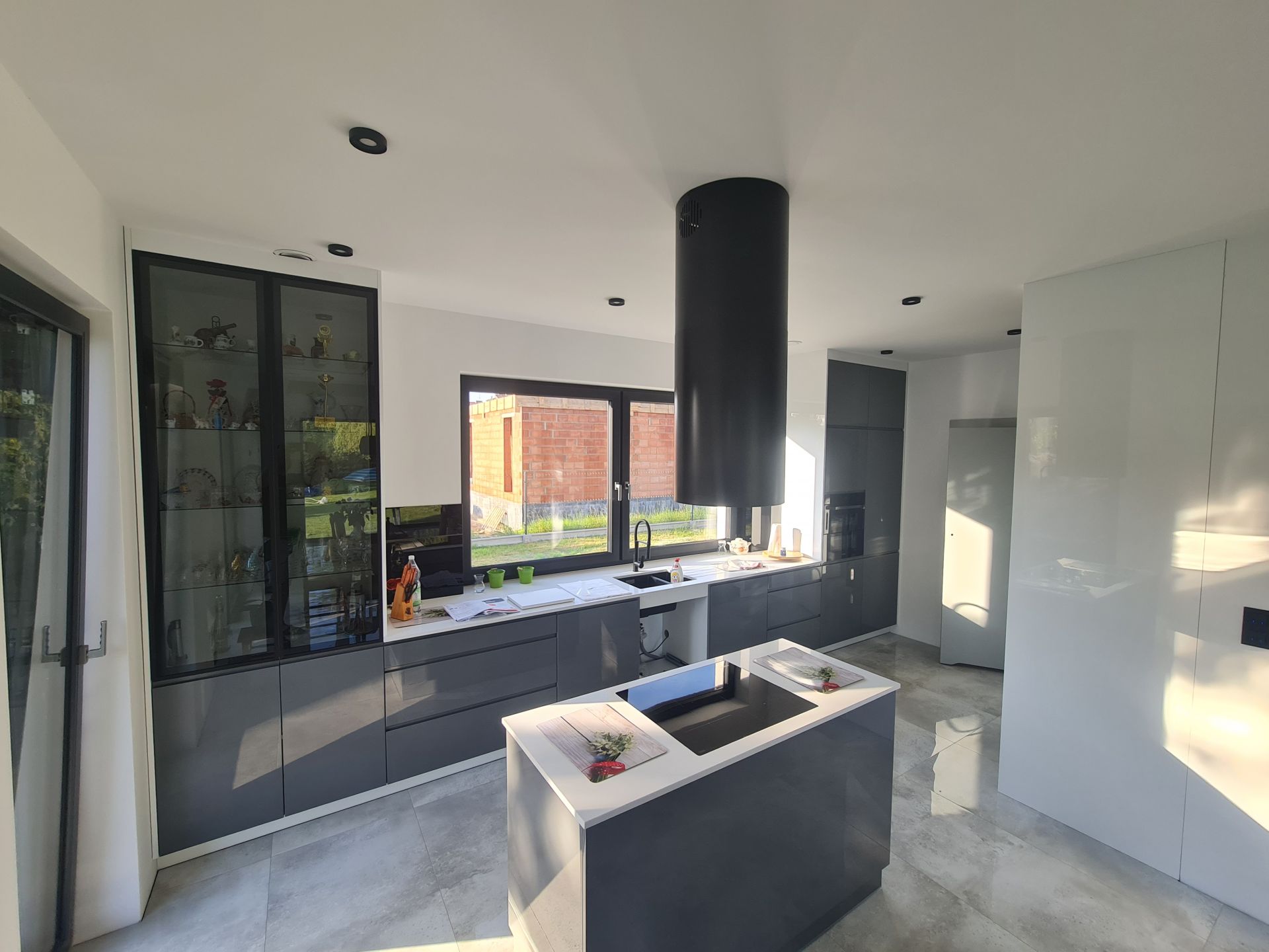 hotă de bucătărie fără ventilator, cu turbină externă (de exemplu, în pod sau în garaj), ca parte a sistemului de bucătărie silențioasă Nortberg Silent Kitchen,