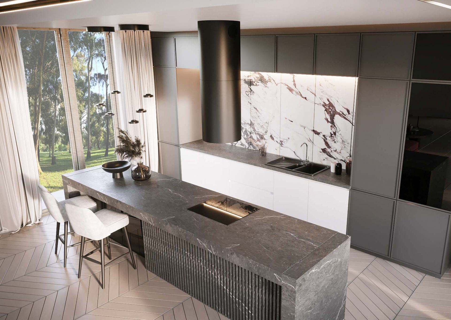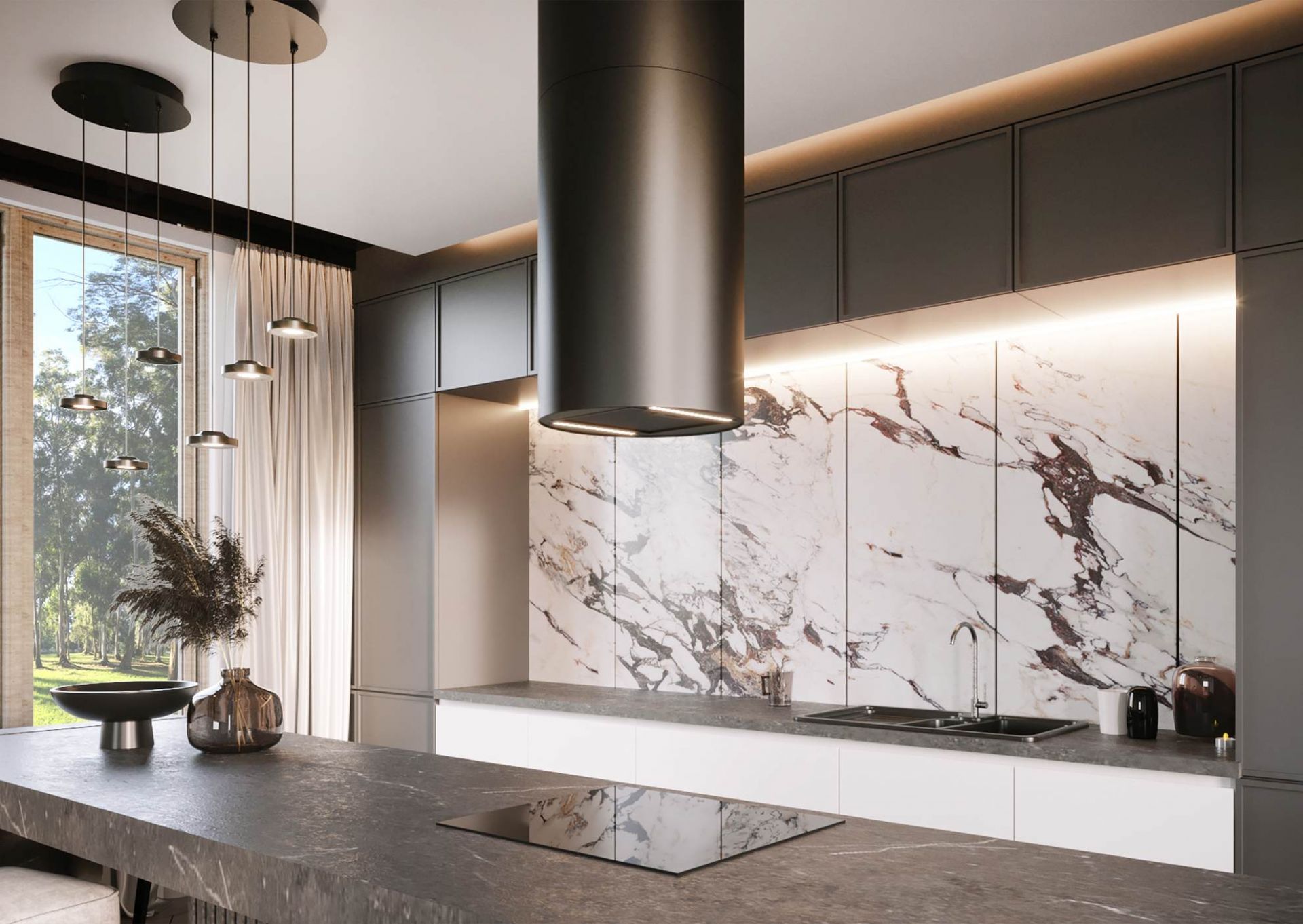 Negrul mat este, fără îndoială, o culoare de top care a câștigat popularitate nu doar în elementele de amenajare, ci și în electrocasnicele în sine. Cele mai importante beneficii ale deținerii unui echipament în negru mat includ rafinamentul, ușurința de a menține curat finisajul și universalitatea. Negrul mat se potrivește perfect în aproape orice interior. Iar Cylindro 2Strips Black Matt este o hotă aproape în întregime neagră: corpul, grila, filtrele și chiar și suporturile de iluminare sunt... negre. Minunată ca element solitar și încorporate. Se potrivește perfect cu un aranjament întunecat, precum și cu un interior luminos, unde va atrage atenția oaspeților. Culorile profunde, saturate, dar și reci sau pastelate se potrivesc ușor cu negrul mat.
