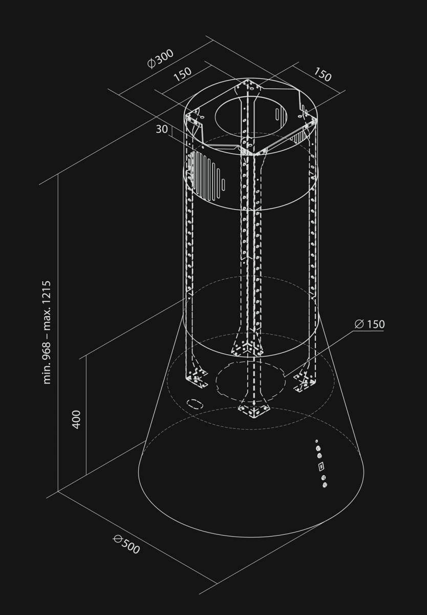 | Înălțime hotă: | min 96,80 cm - max 121,50 cm |