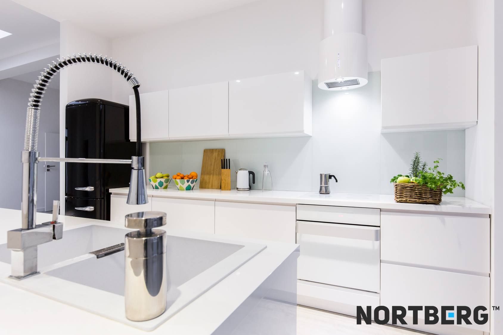 Nortberg Bucătărie Liniștită (locația în interiorul clădirii) – sistem de extracție cu turbina poziționată în afara bucătăriei (în interiorul casei, la o distanță de până la 4 m de aparat, de exemplu în pod, garaj, cameră tehnică, cămară, balcon sau alte spații auxiliare).