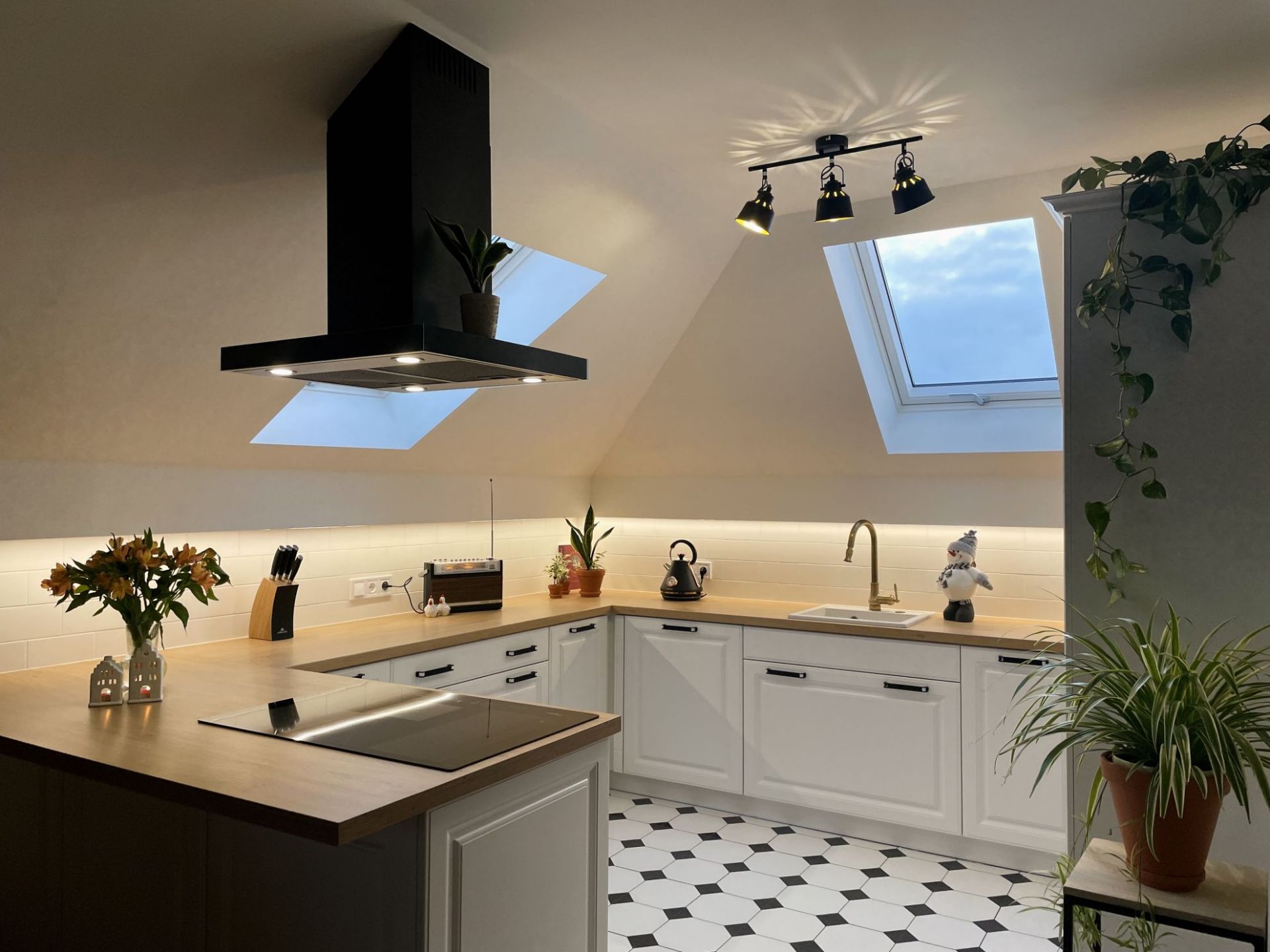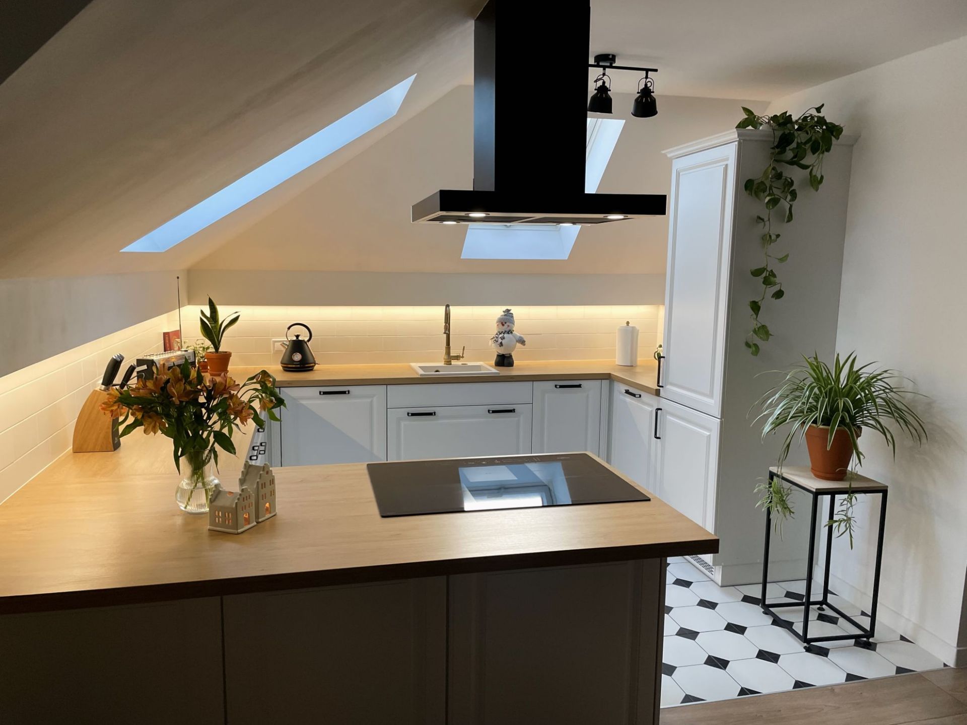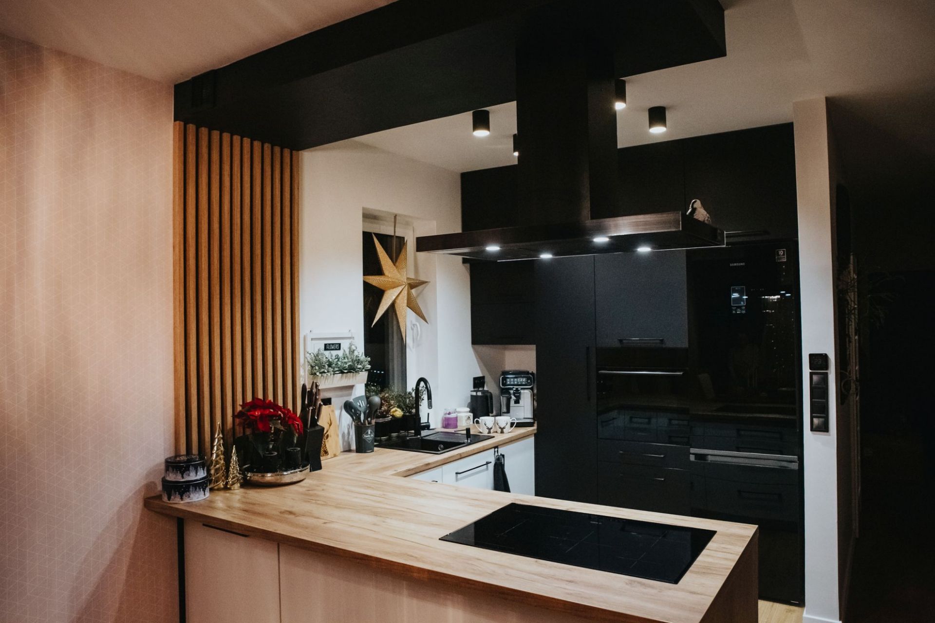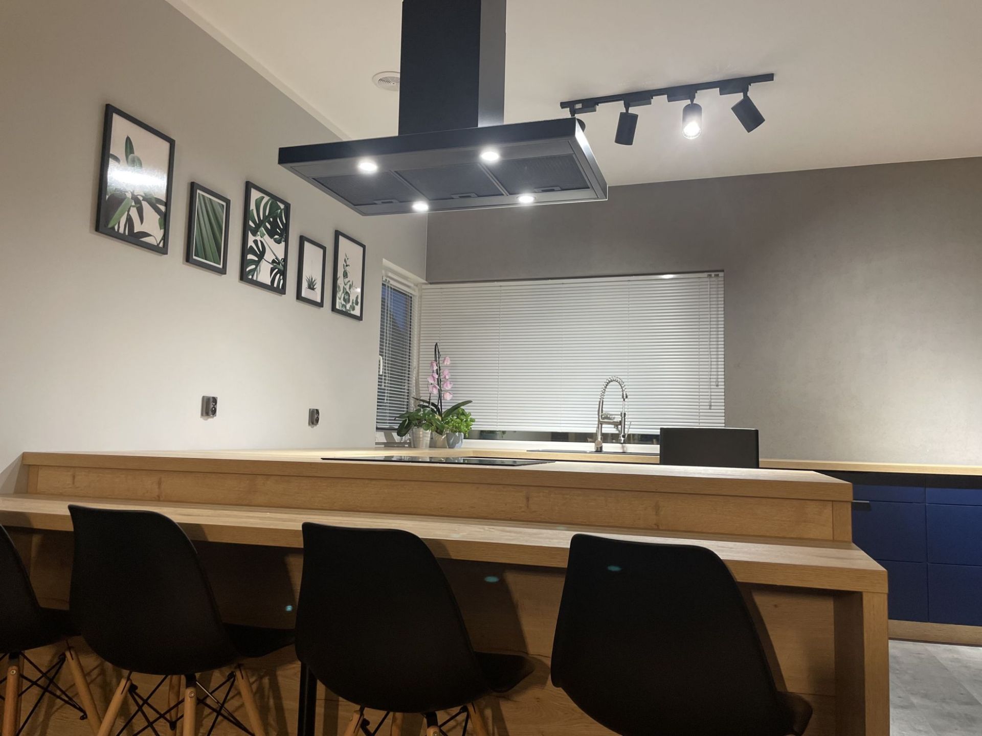 Hotă de tip T inversat (așa-numitul T-shape) este incredibil de caracteristică. Forma legendară cu coș la mijloc și „poliță” pentru mărunțișuri face trimitere clară la gastronomie. O astfel de formă este practică și elegantă în același timp. Se va potrivi cu ușurință în interioare foarte clasice, minimaliste și scandinave, dar și moderne, industriale și loft.