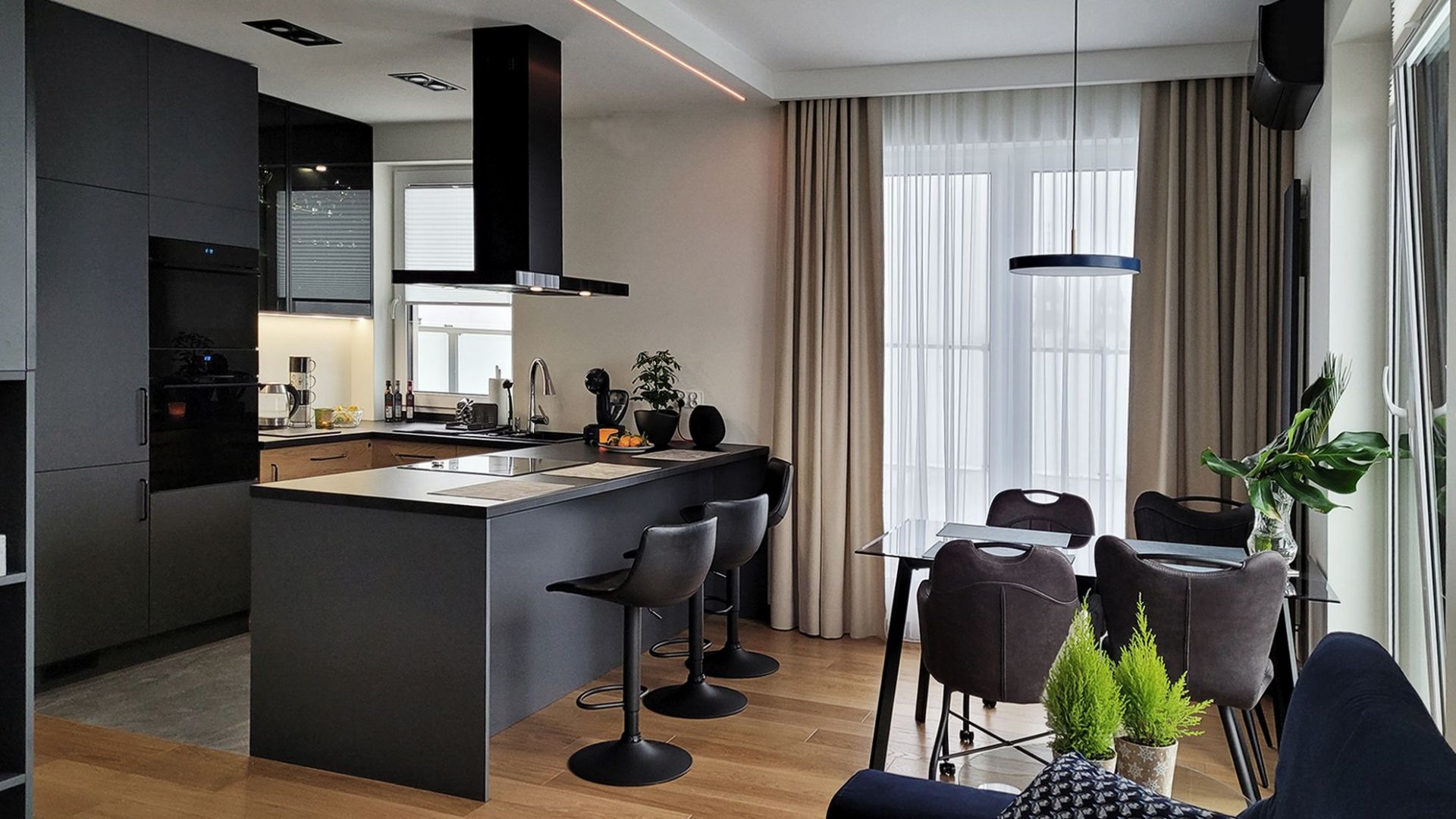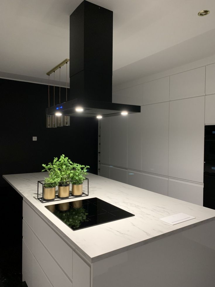 Hotă de insulă Sento Island Strips Black Matt – Pachetul include: