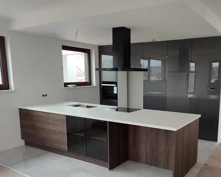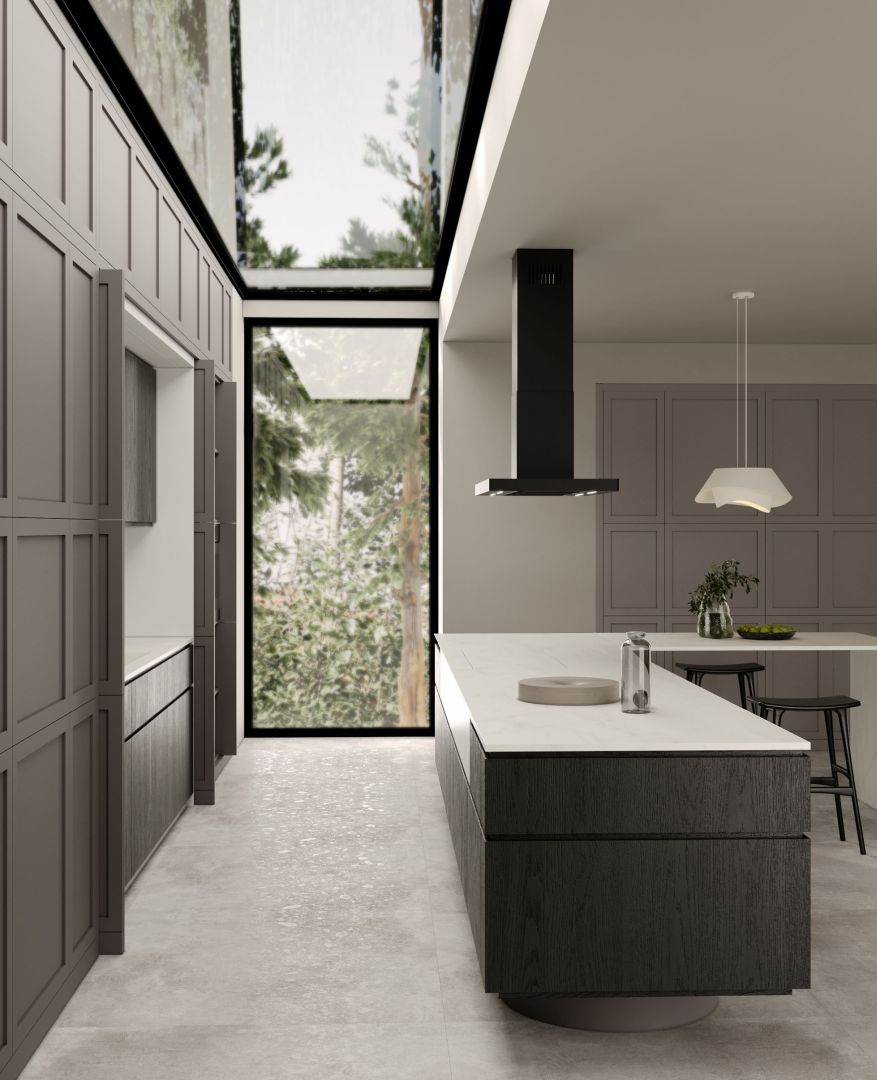 hotă de bucătărie fără ventilator, cu turbină externă (de exemplu, în pod sau garaj), ca parte a sistemului de bucătărie silențioasă Nortberg Silent Kitchen,