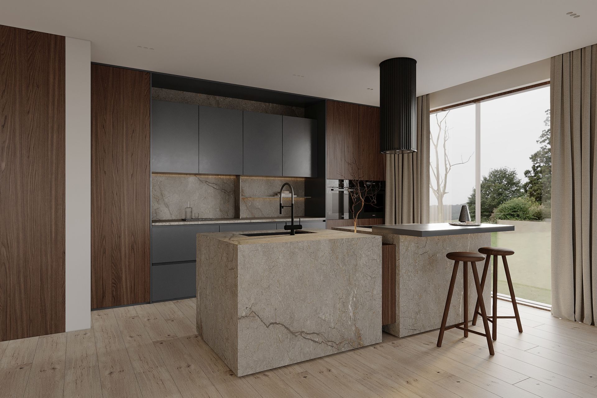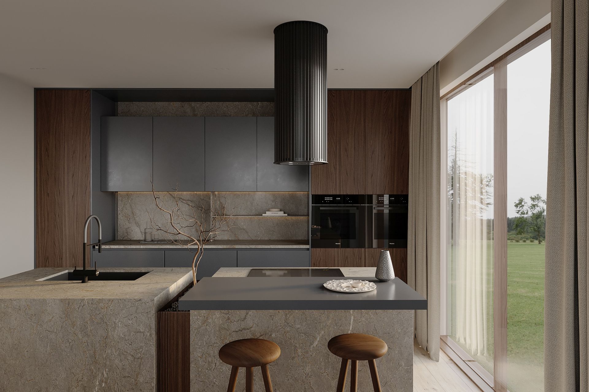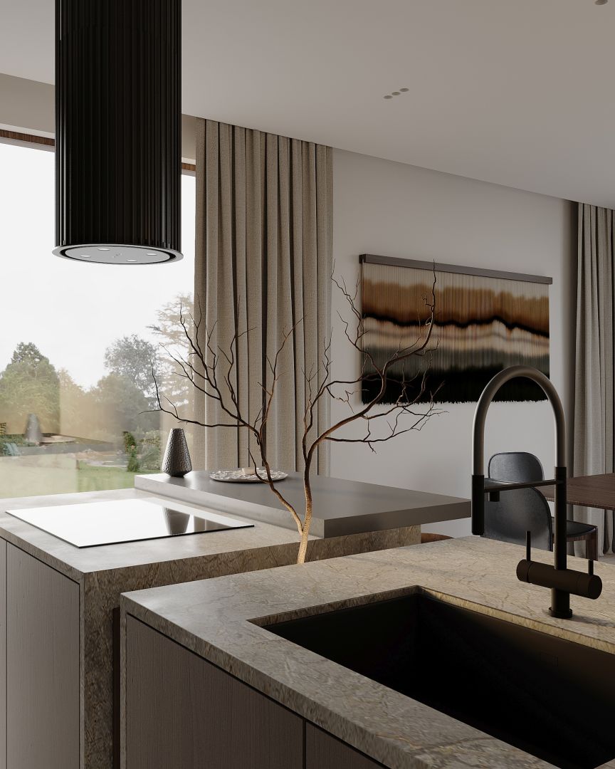 Voliera este o hotă insulă care duce designul bucătăriei la un nivel complet nou. Forma sa cilindrică, înconjurată de tuburi decorative, introduce o senzație de profunzime și lux, reflectând cele mai recente tendințe în lumea designului interior. Este mai mult decât o hotă – este un punct central al bucătăriei, care atrage privirile și impresionează prin unicitatea sa.