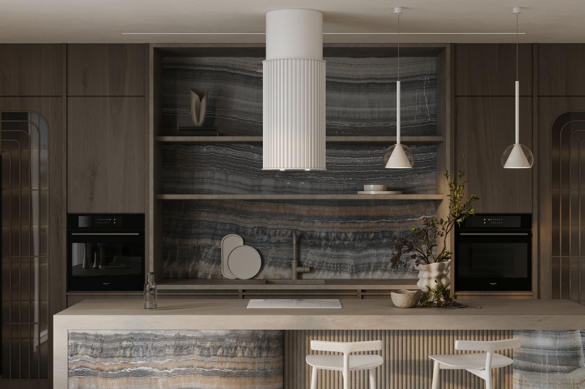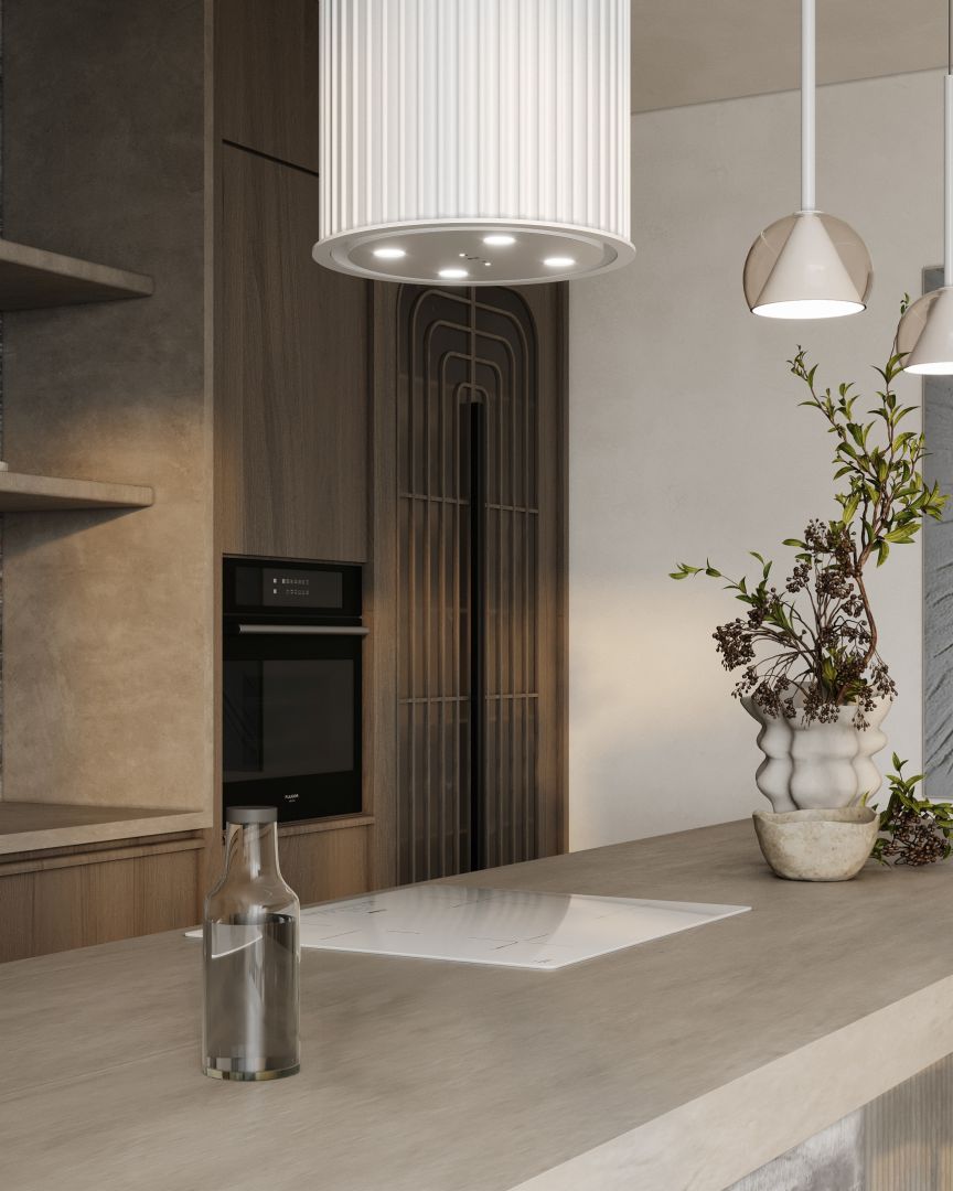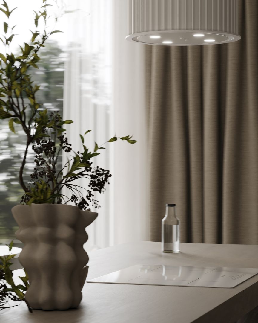 Voliera este o hotă insulă care duce designul bucătăriei la un nivel complet nou. Forma sa cilindrică, înconjurată de tuburi decorative, introduce o senzație de profunzime și lux, reflectând cele mai recente tendințe în lumea designului interior. Este mai mult decât o hotă – este un punct central al bucătăriei, care atrage privirile și impresionează prin unicitatea sa.