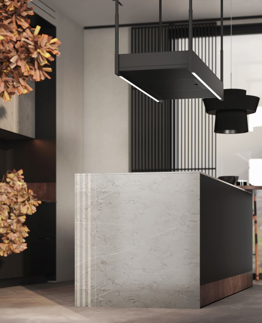 Forma sa clasică este echilibrată de funcționalitatea superbă a hotei. O turbină de înaltă performanță, iluminat LED eficient din punct de vedere energetic, cu o temperatură de culoare apropiată de cea a luminii de zi, control convenabil prin gesturi – aceste elemente subliniază modernitatea hotei. În plus, personalizarea dispozitivului: posibilitatea de a regla înălțimea, mai multe variante (hotă standard, cu raft de sticlă sau de lemn) și o gamă largă de lățimi din care să alegi (120, 150, 180 cm) demonstrează caracterul intransigent al designului.