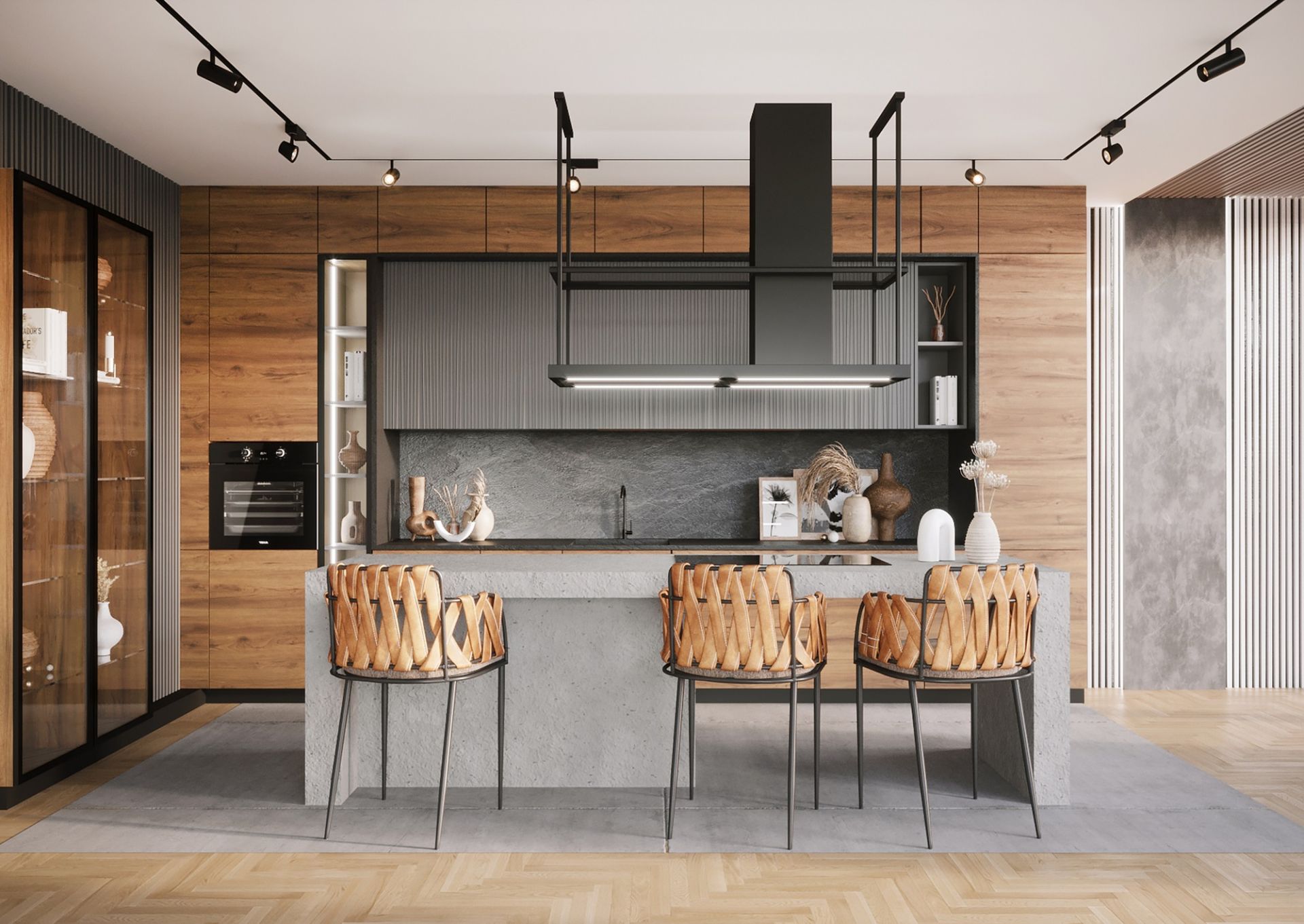 Hota insulară modernă a fost proiectată pentru iubitorii de minimalism și forme austere. Model ideal pentru lofturi și softlofturi cu tavane înalte caracteristice, vitraje mari și spațiu deschis.