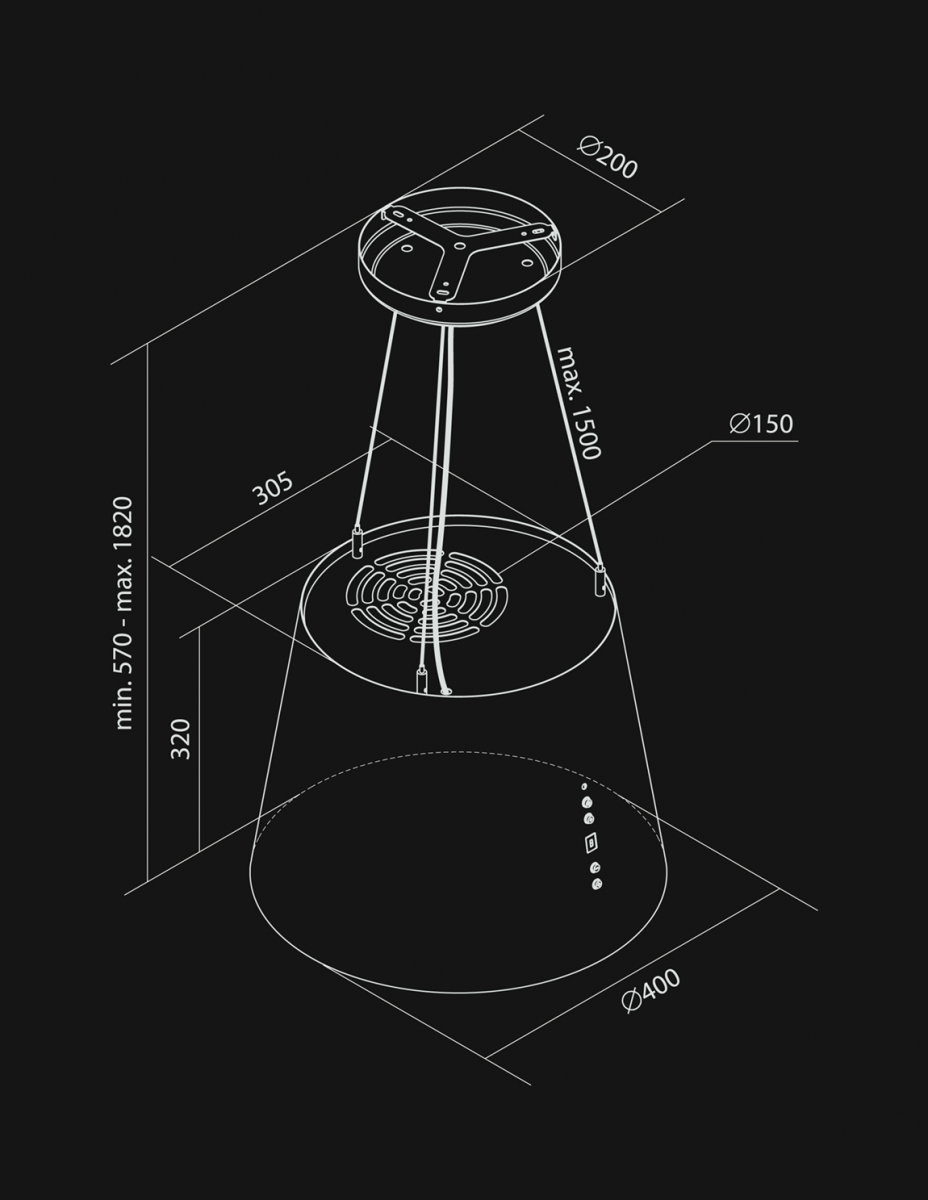 Reglarea înălțimii hotei cu ajutorul cablurilor, max. 1,5 m