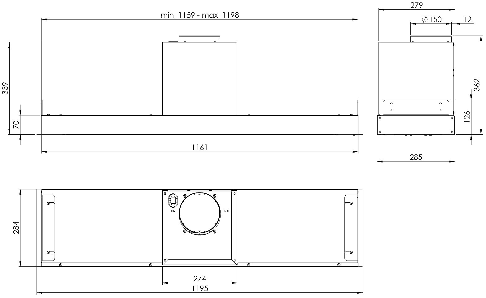 Hota Incorporabile Micra White Matt 120 cm